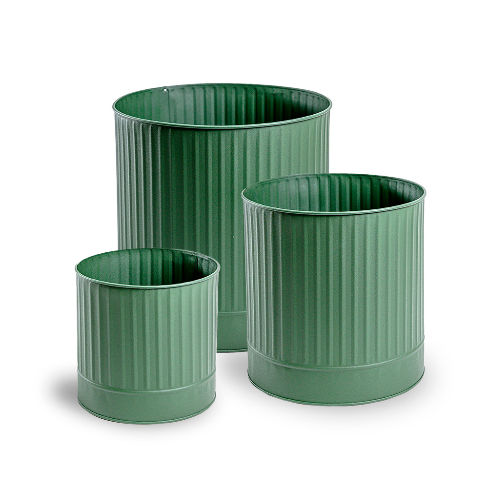 Produzido em metal com acabamento em pintura fosca e canelada, que cria um efeito visual de relevo vertical. O material é leve e resistente, ideal para uso decorativo.