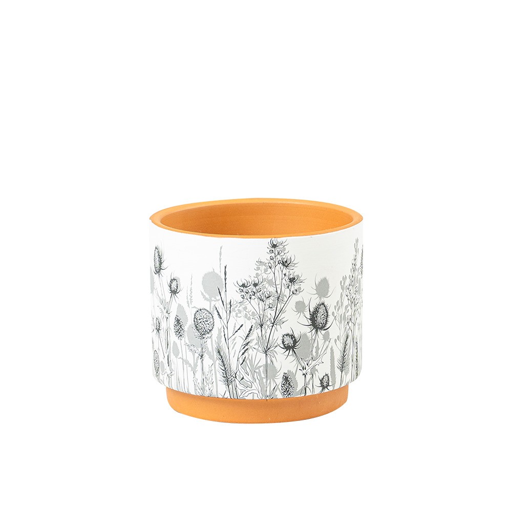 Este vaso é uma peça encantadora que une a beleza rústica da cerâmica com uma estampa floral moderna e delicada. Com sua base em cerâmica aparente e o corpo com estampa, ele é ideal para adicionar um toque de natureza e arte a qualquer ambiente.