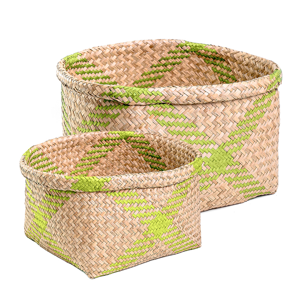 Este cesto de fibra natural é a peça perfeita para trazer funcionalidade, textura e um toque artesanal para a sua casa. Com seu design quadrado e detalhes em trançado verde, ele combina a beleza rústica dos materiais naturais com um toque moderno de cor.