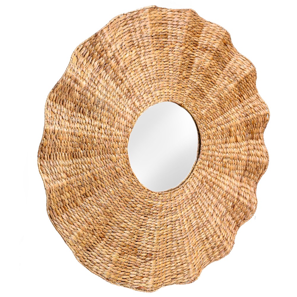 Adicione um toque de elegância rústica e textura às suas paredes com este espelho decorativo. Com sua moldura de fibra natural ondulada, ele é a peça perfeita para criar um ponto focal em qualquer ambiente, combinando funcionalidade com design artesanal e orgânico.